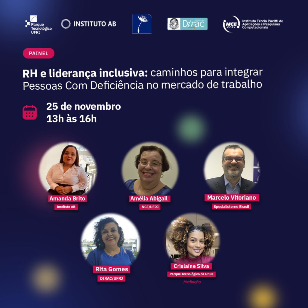 O evento contará ainda com um espaço de ativação de vagas afirmativas, reforçando o compromisso do Parque Tecnológico da UFRJ e de seu ecossistema em apoiar a inclusão de PCD no mercado de trabalho.