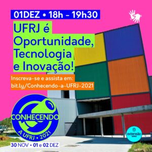 Conhecer os cursos, as funcionalidades e as oportunidades que a Universidade Federal do Rio de Janeiro (UFRJ), uma das melhores do país, tem para oferecer. Essa é a proposta do Conhecendo a UFRJ, idealizado pela Pró-Reitoria de Extensão e que contará com a participação do Parque Tecnológico da UFRJ. O evento virtual acontece de 30/11 a 02/12 e contará com intérprete de libras.